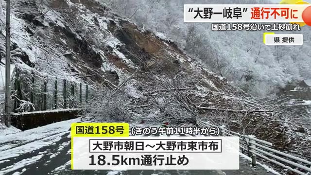 岐阜県境の国道158号で土砂崩れ相次ぐ 大野市朝日~東市布間18.5キロが通行止め 復旧に数カ月の可能性あり、岐阜との行き来できない状況【福井】