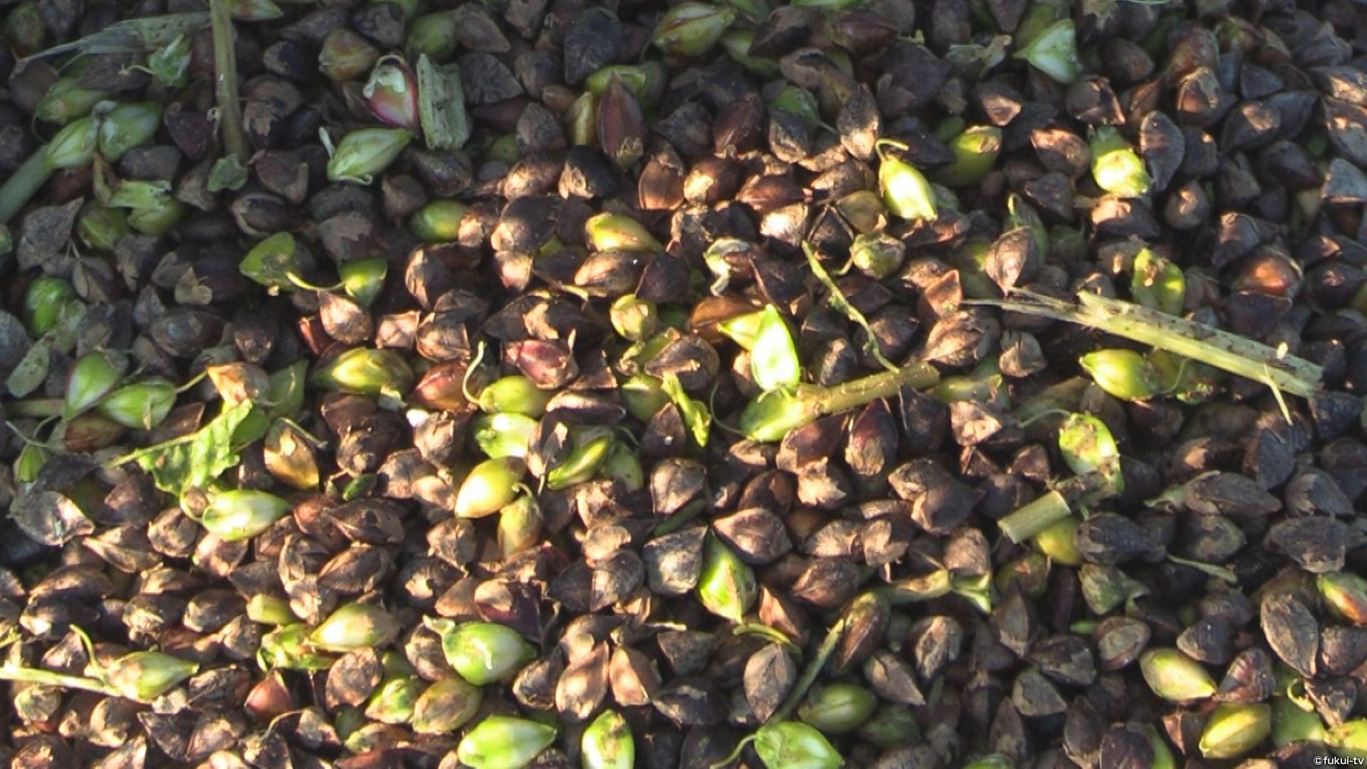 実は、福井のそばは、そば自体も多様なのだとか。福井県各地で守られてきた「在来種」のソバです。県内では品種改良されていない在来種が今も栽培されており、地域ごとに受け継がれた種が22系統も存在します。在来種は成熟度が揃わないため、成熟した実と未熟な実が混ざった状態で収穫されますが、これが独特の香りや味わいを生み出す要因になっています。