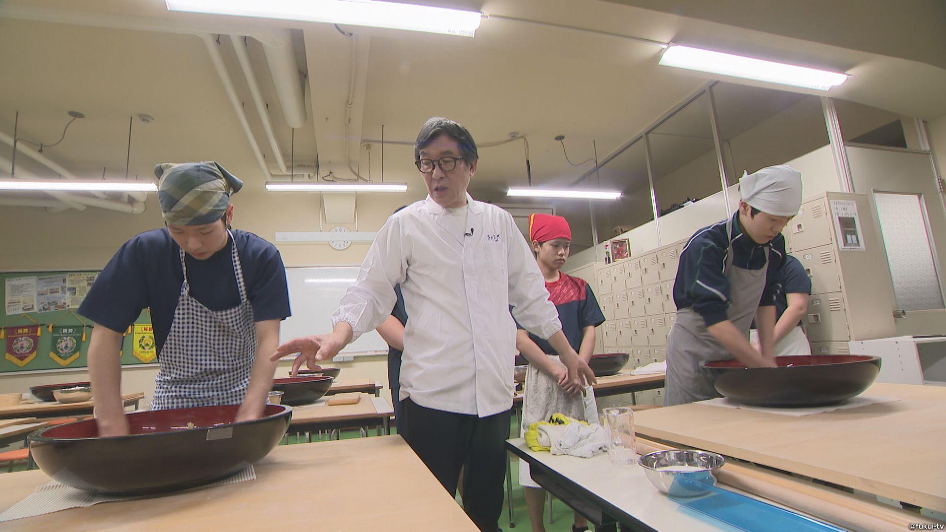 再び宝山さんを訪ねると、啓新高校にいるとのこと。宝山さんは、そば文化を若い世代に広めるため、12年前、啓新高校の校長先生に掛け合って「そば部」を創設してもらいました。宝山さんが指導する啓新高校そば部は、全国大会で三連覇するほどの強豪で、卒業生の中にはプロのそば職人になった人もいます。来年4月には、そば部からまた1人、そば店に就職します。