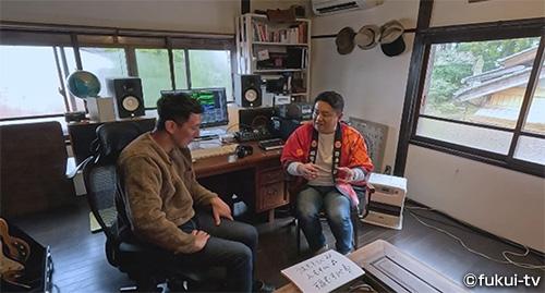 そして始まった曲作り。曲は久保さんが、そして歌詞の一部は隊長が…、と手分けして臨むと徐々に形になってきたところで久保さんが驚きのプランを告白。というのは、福むすび歌謡祭に足を運んでくれたお客さんで「掛け声」を録音し、曲に入れ込もうと考えていたんです。まさに、福井県民参加型の音頭を作るつもりなんです。