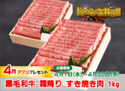【アプリ会員限定】黒毛和牛 霜降り すき焼き肉 1kgを抽選で2名様にプレゼント!